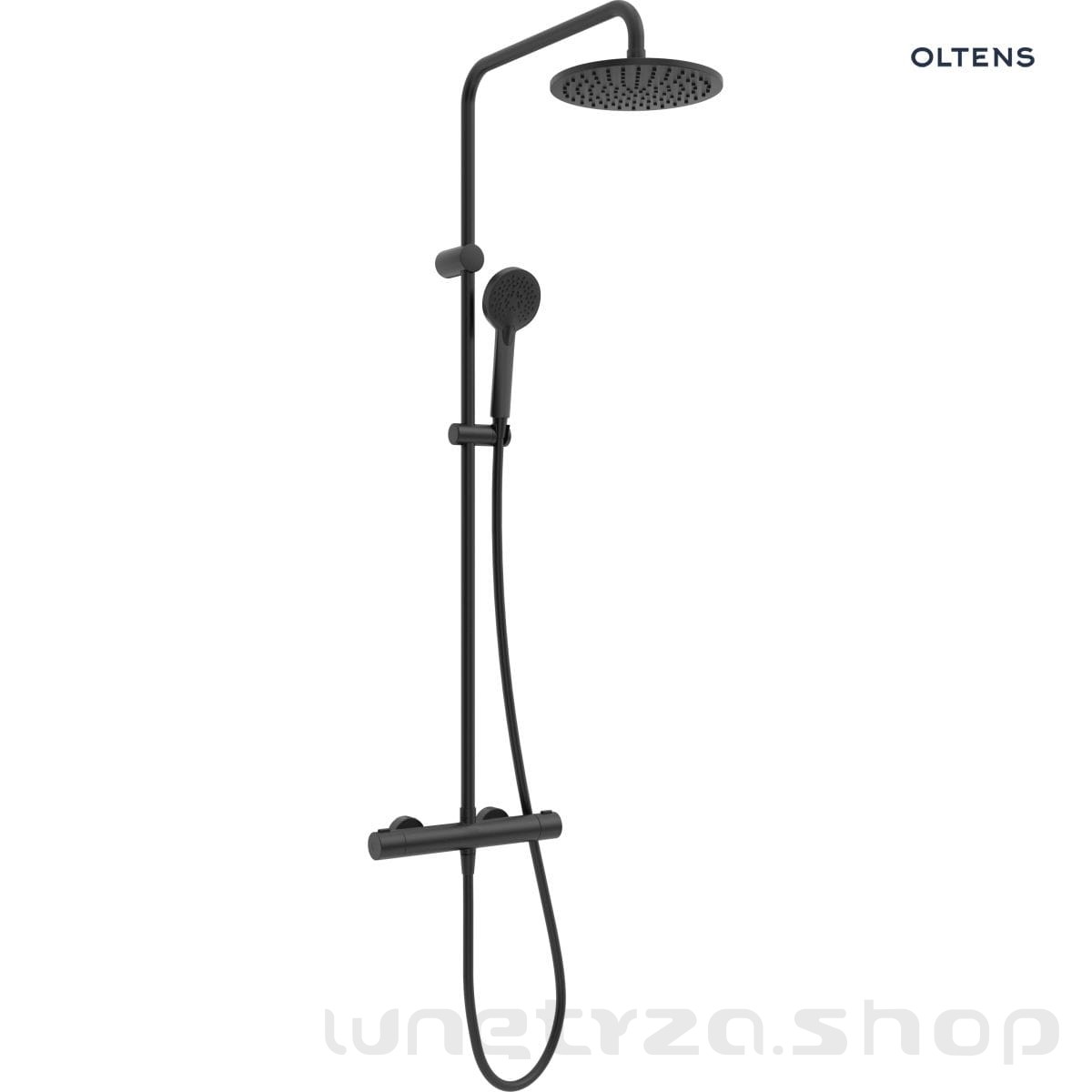 Oltens Atran zestaw prysznicowy termostatyczny z deszczownicą czarny mat 36500300