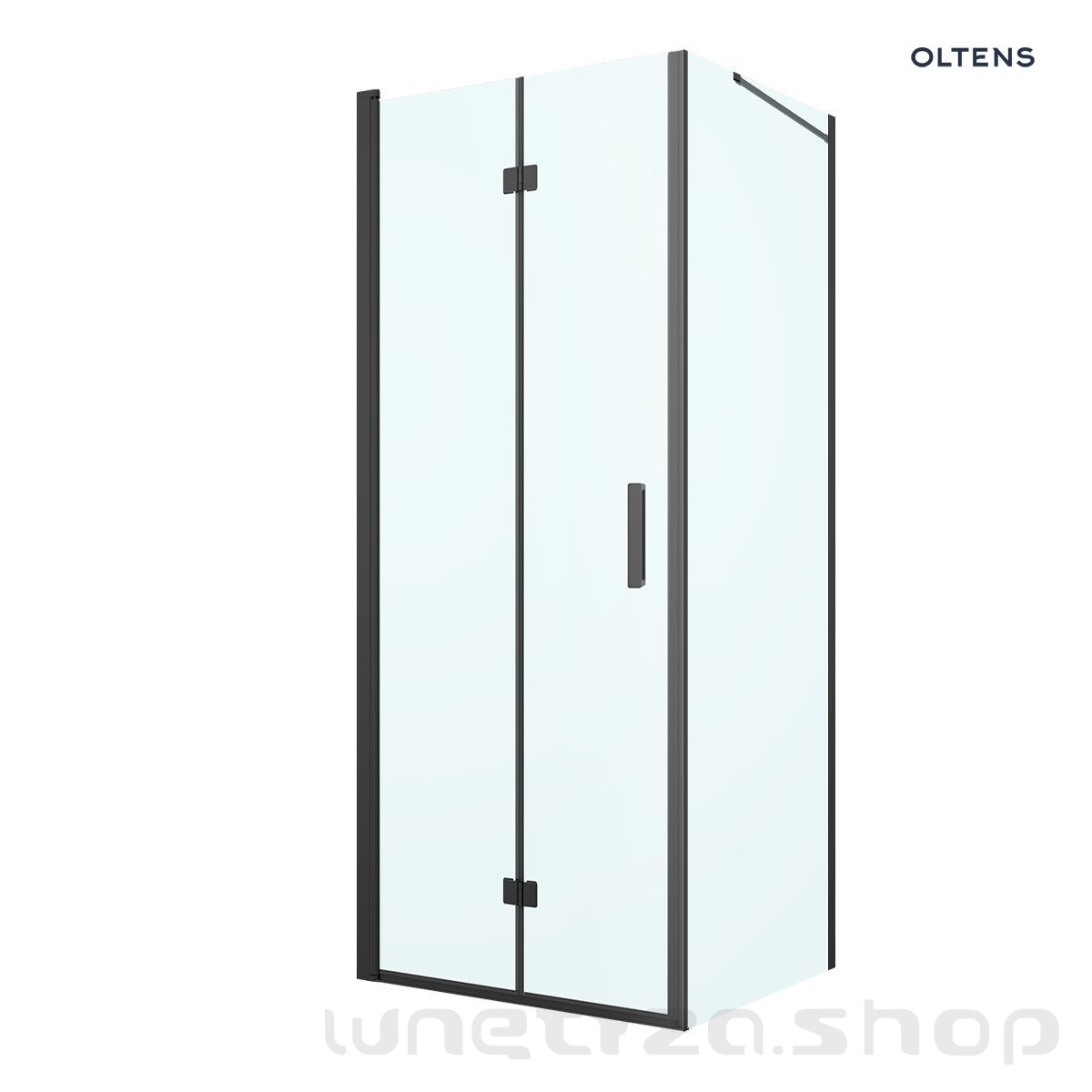 Oltens Hallan kabina prysznicowa 80x80 cm kwadratowa drzwi ze ścianką czarny mat/szkło przezroczyste 20007300