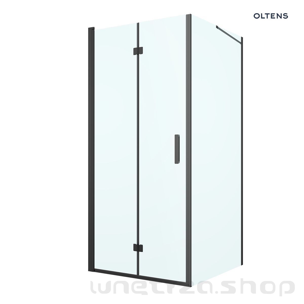 Oltens Hallan kabina prysznicowa 90x100 cm prostokątna drzwi ze ścianką czarny mat/szkło przezroczyste 20203300