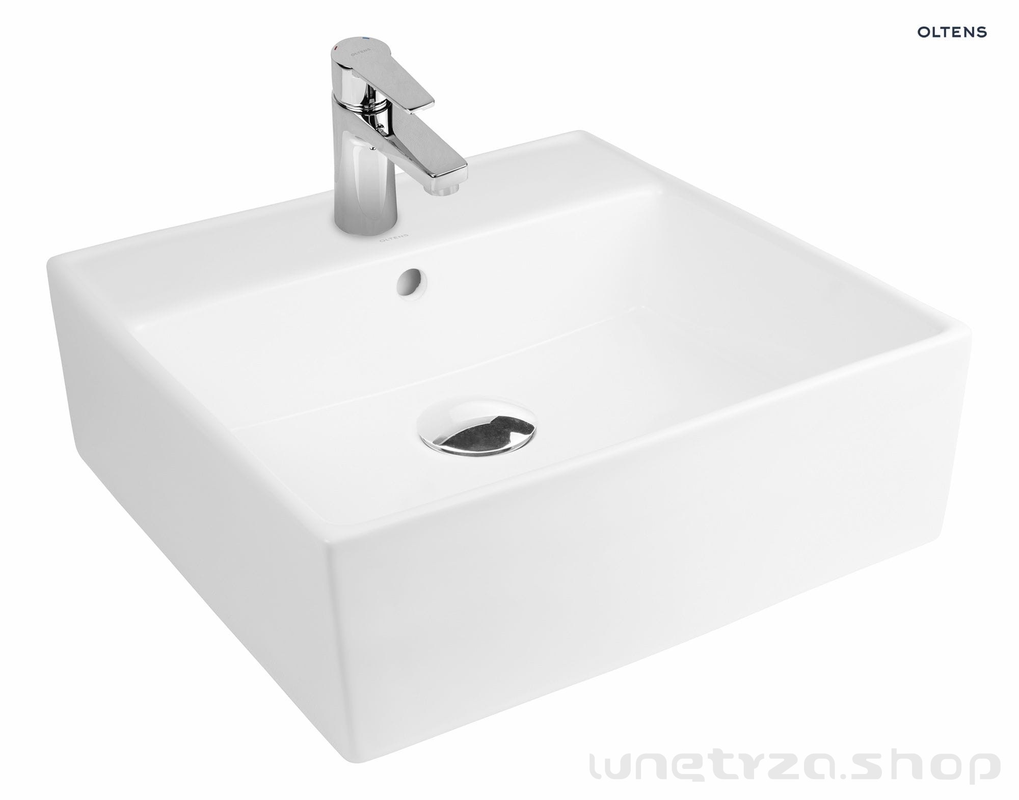 Oltens Hyls umywalka 47 cm nablatowa kwadratowa z powłoką SmartClean biała 41809000