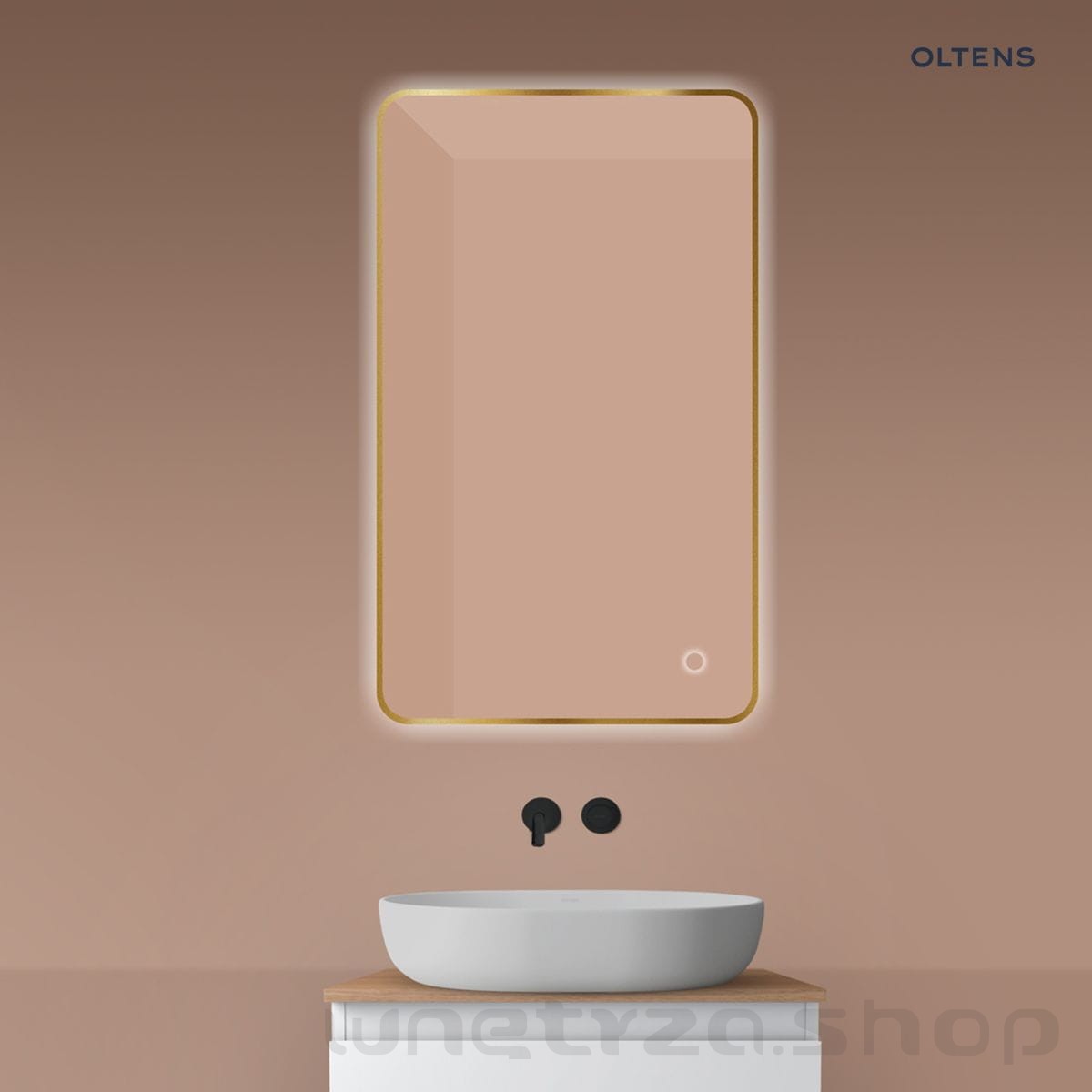 Oltens Nordlis lustro 60x100 cm prostokątne z oświetleniem od tyłu z matą grzewczą złoto szczotkowane 64120810