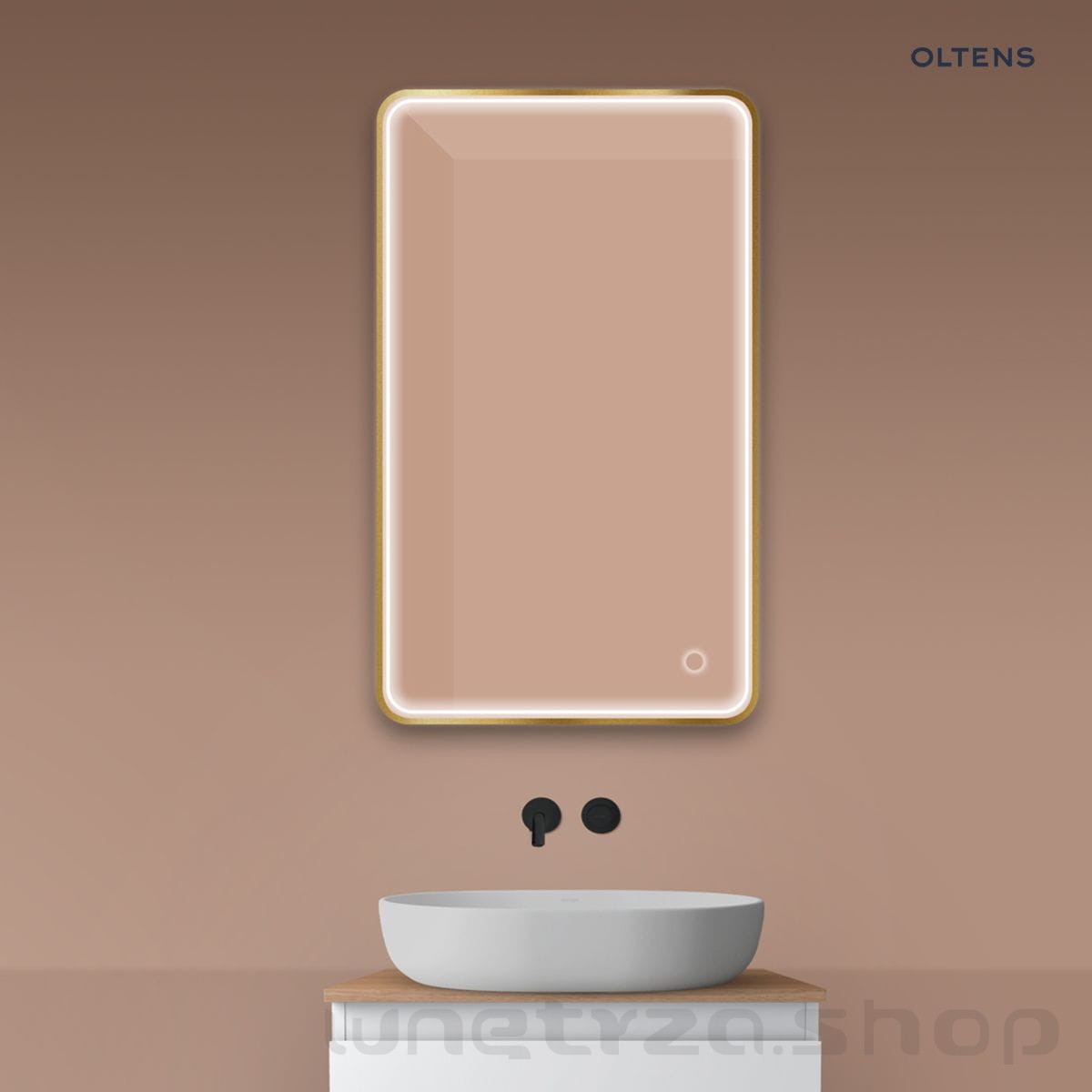 Oltens Nordlis lustro 60x100 cm prostokątne z oświetleniem z przodu z matą grzewczą złoto szczotkowane 64117810