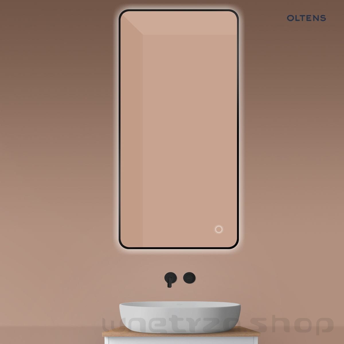 Oltens Nordlis lustro 60x120 cm prostokątne z oświetleniem od tyłu z matą grzewczą czarny 64121300