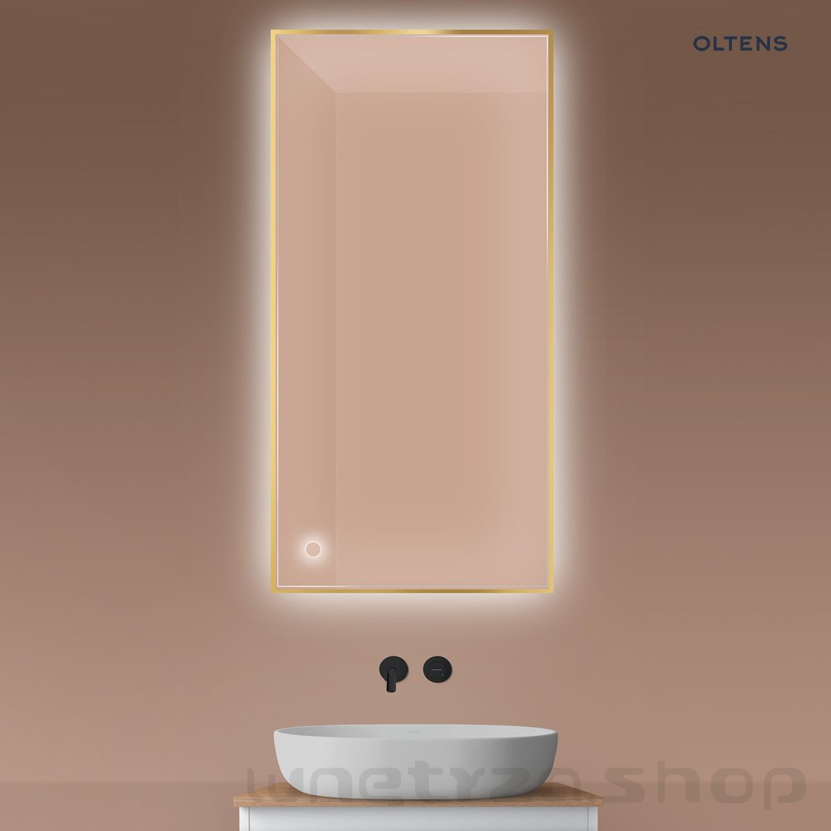 Oltens Nordlis lustro 60x120 cm prostokątne z oświetleniem od tyłu z matą grzewczą złoty 64112800