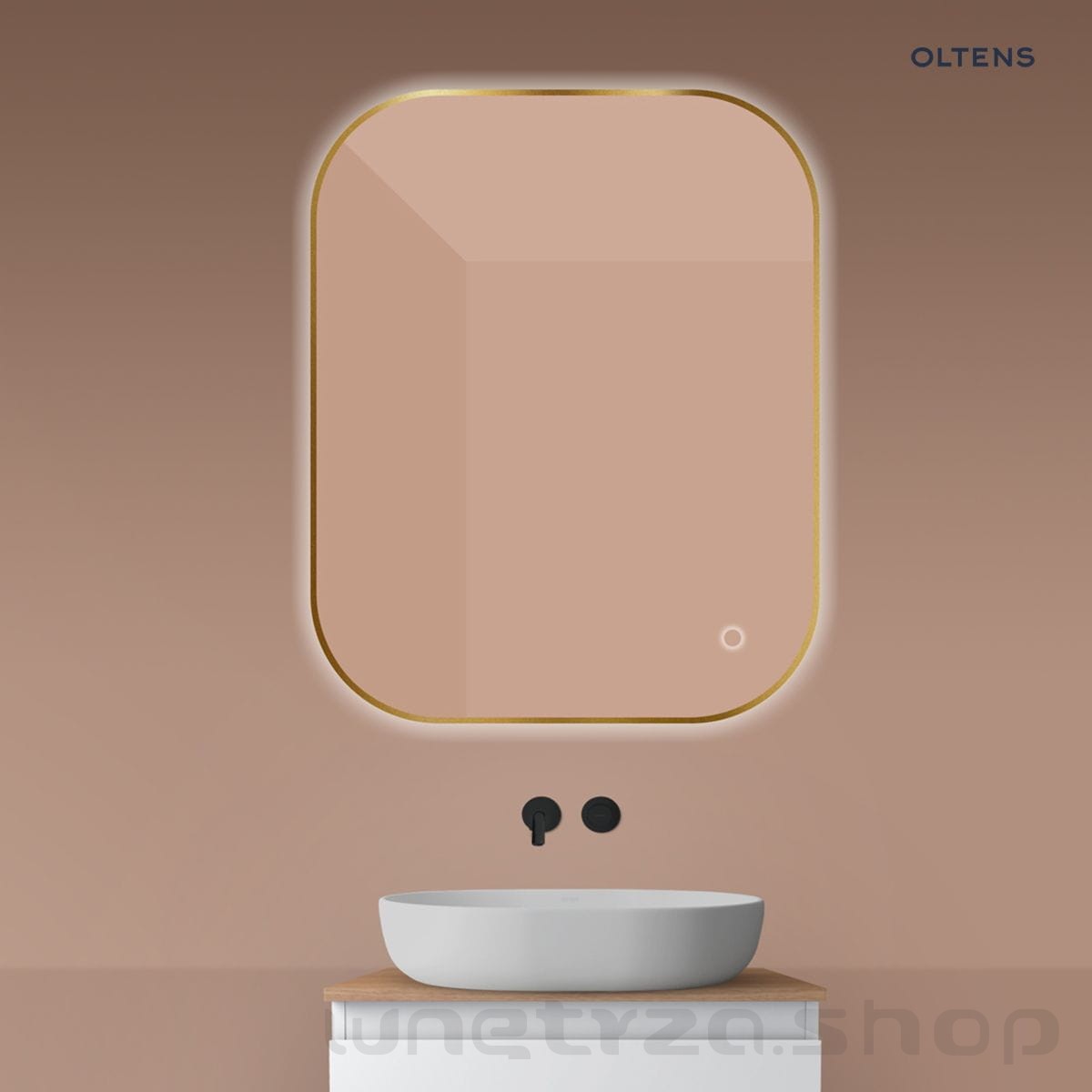 Oltens Nordlis lustro 80x100 cm prostokątne z oświetleniem od tyłu z matą grzewczą złoto szczotkowane 64127810
