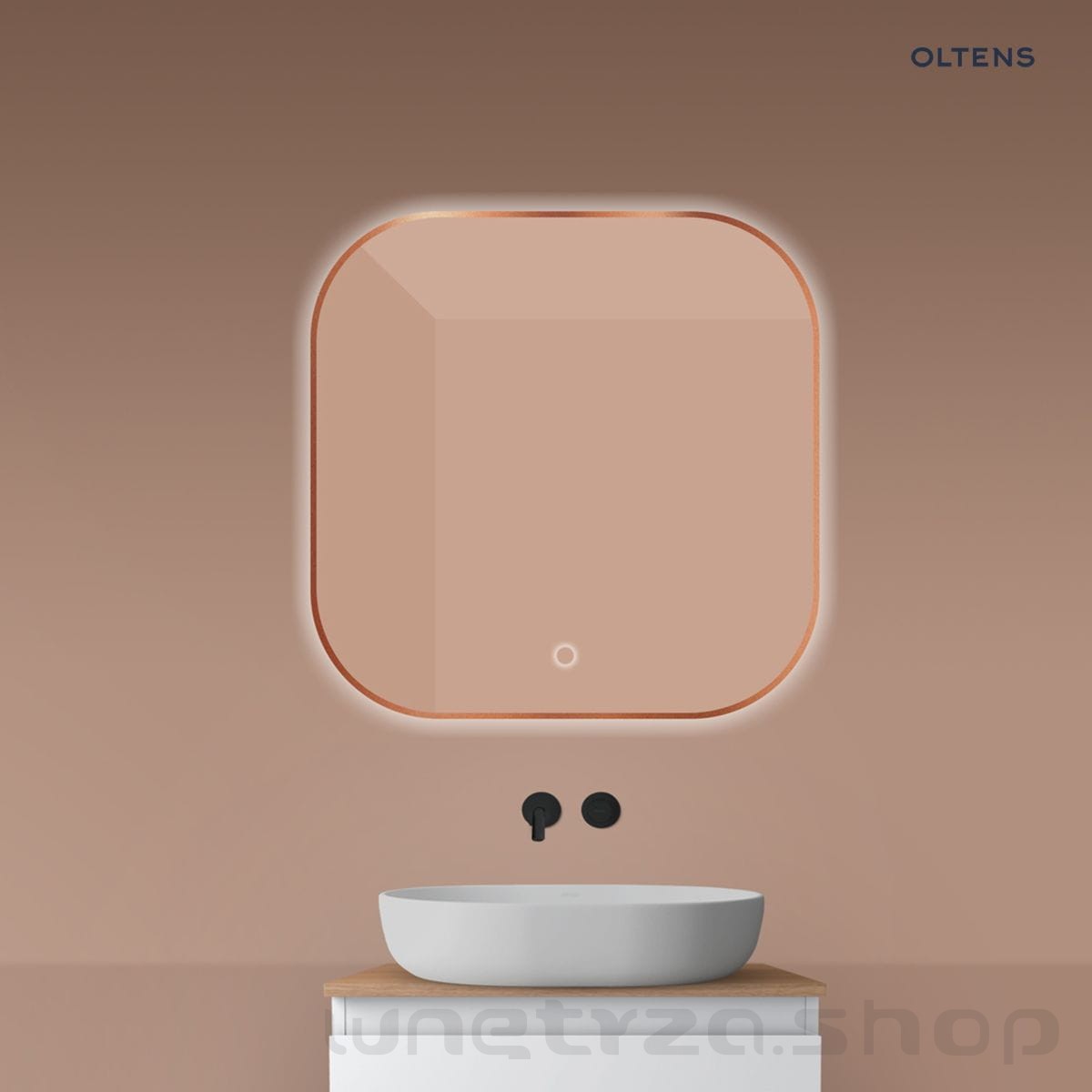 Oltens Nordlis lustro 80x80 cm kwadratowe z oświetleniem od tyłu z matą grzewczą miedź szczotkowana 64125610