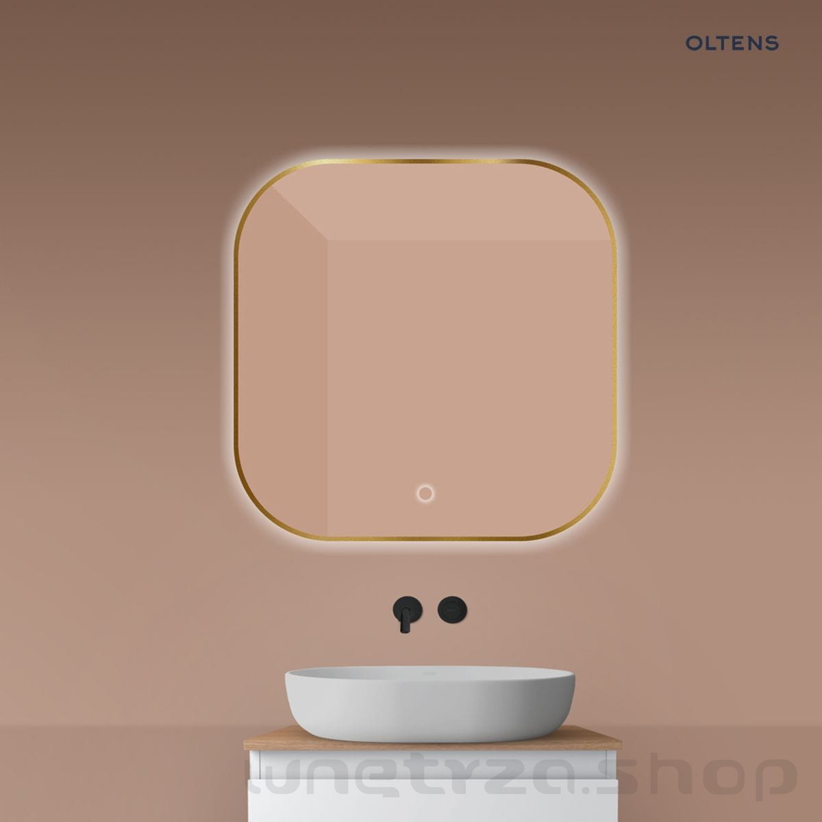 Oltens Nordlis lustro 80x80 cm kwadratowe z oświetleniem od tyłu z matą grzewczą złoto szczotkowane 64125810