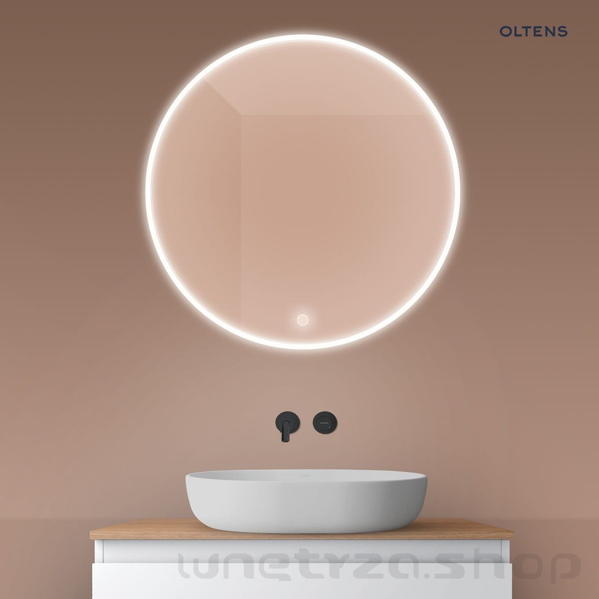 Oltens Nordlis lustro 80x80 cm okrągłe z oświetleniem z przodu z matą grzewczą 64101000