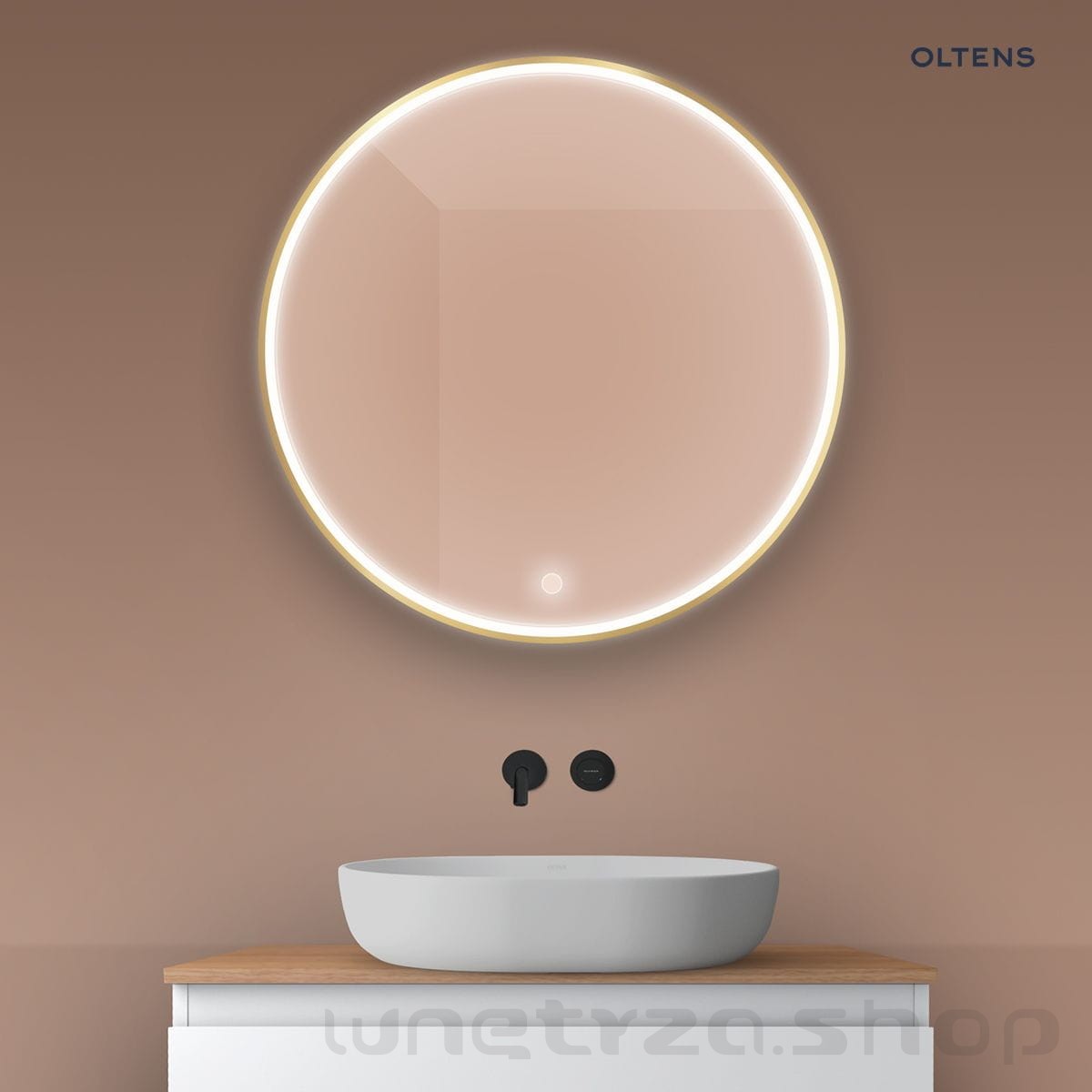Oltens Nordlis lustro 80x80 cm okrągłe z oświetleniem z przodu z matą grzewczą złoty 64101800