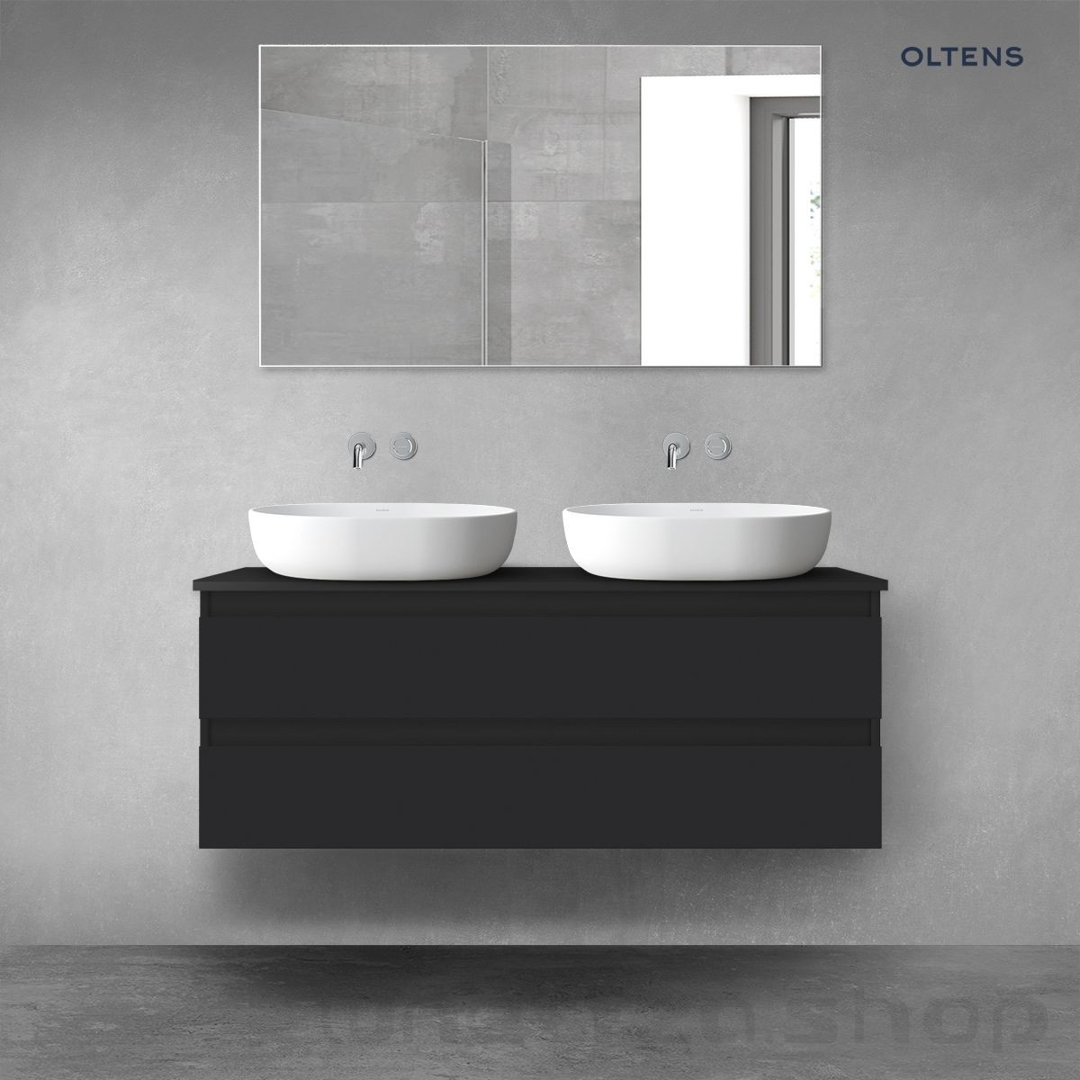 Oltens Vernal szafka 120 cm podumywalkowa wisząca z blatem czarny mat 68466300