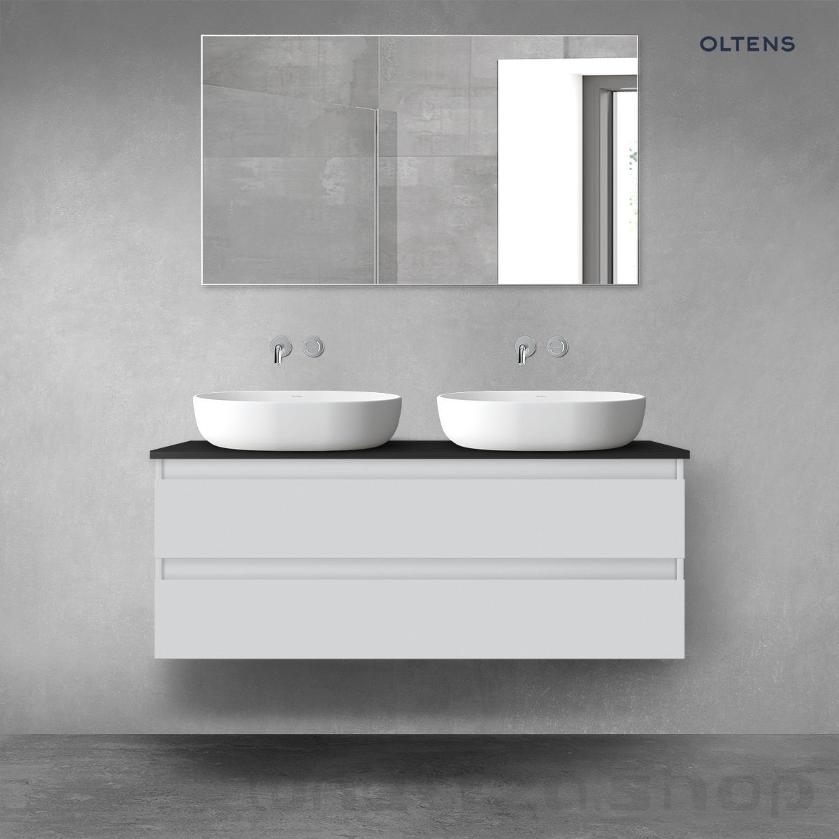 Oltens Vernal szafka 120 cm podumywalkowa wisząca z blatem szary mat/czarny mat 68468700