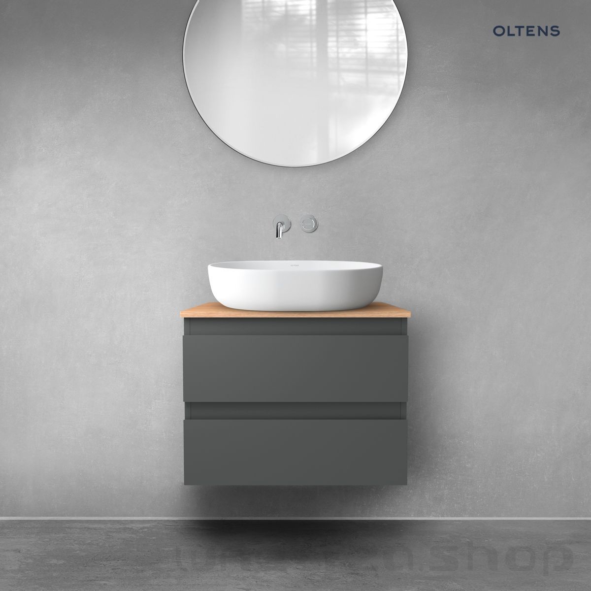 Oltens Vernal szafka 60 cm podumywalkowa wisząca z blatem grafit mat/dąb 68124400