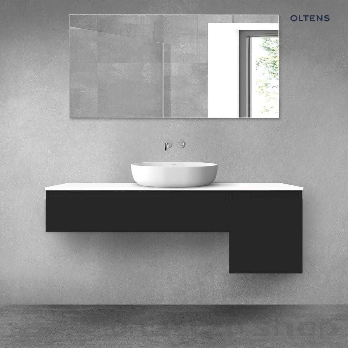 Oltens Vernal zestaw mebli łazienkowych 140 cm z blatem czarny mat/biały połysk 68284300