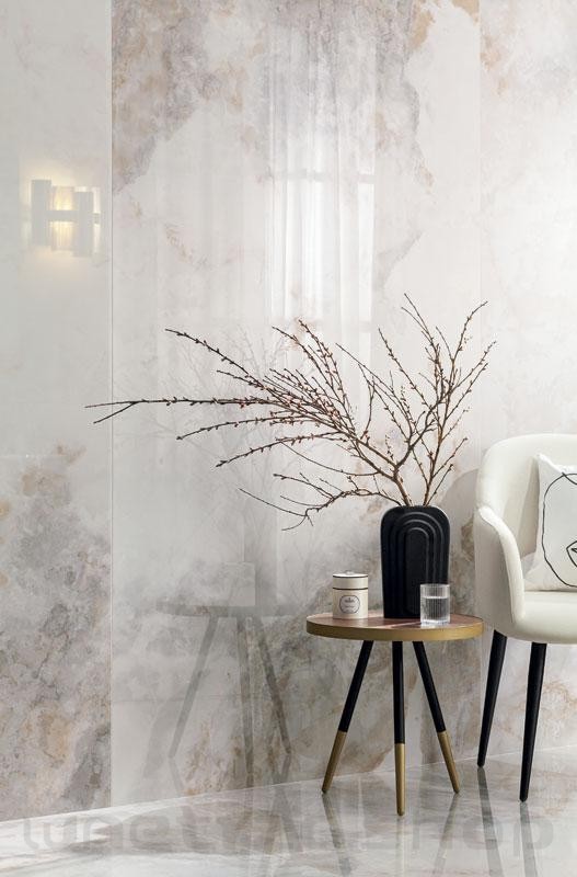 Płyty wielkoformatowe Tubądzin Onice Bianco - gres szkliwiony, matowy 119,8x119,8 cm, Gat.1