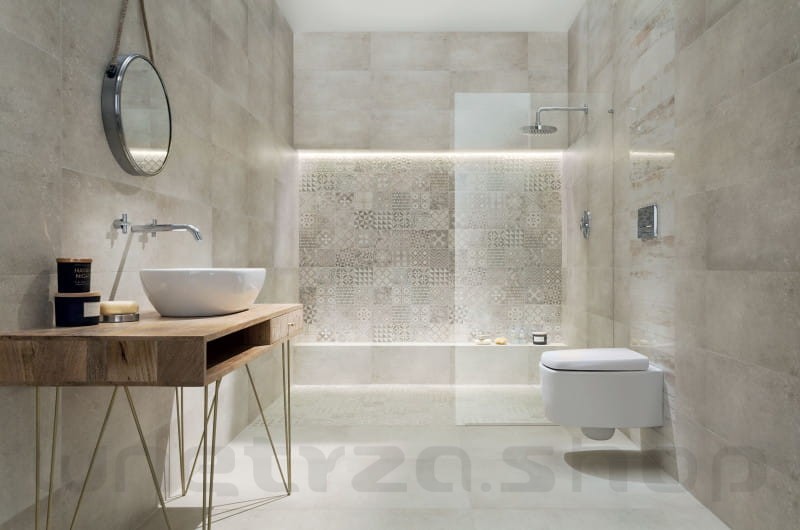 Płytki ścienne z kolekcji Tubądzin Sfumato mają ciepły, beżowy odcień i dekoracyjne wzory. Powierzchnia kafli ma matowe wykończenie i 11 mm grubości.