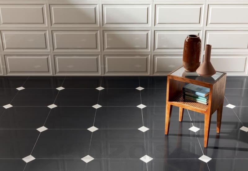 Czarna płytka podłogowa z kolekcji Timeless Macieja Zienia w formacie 7,3x7,3 cm i grubości 1cm