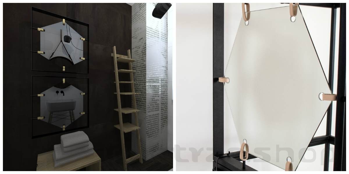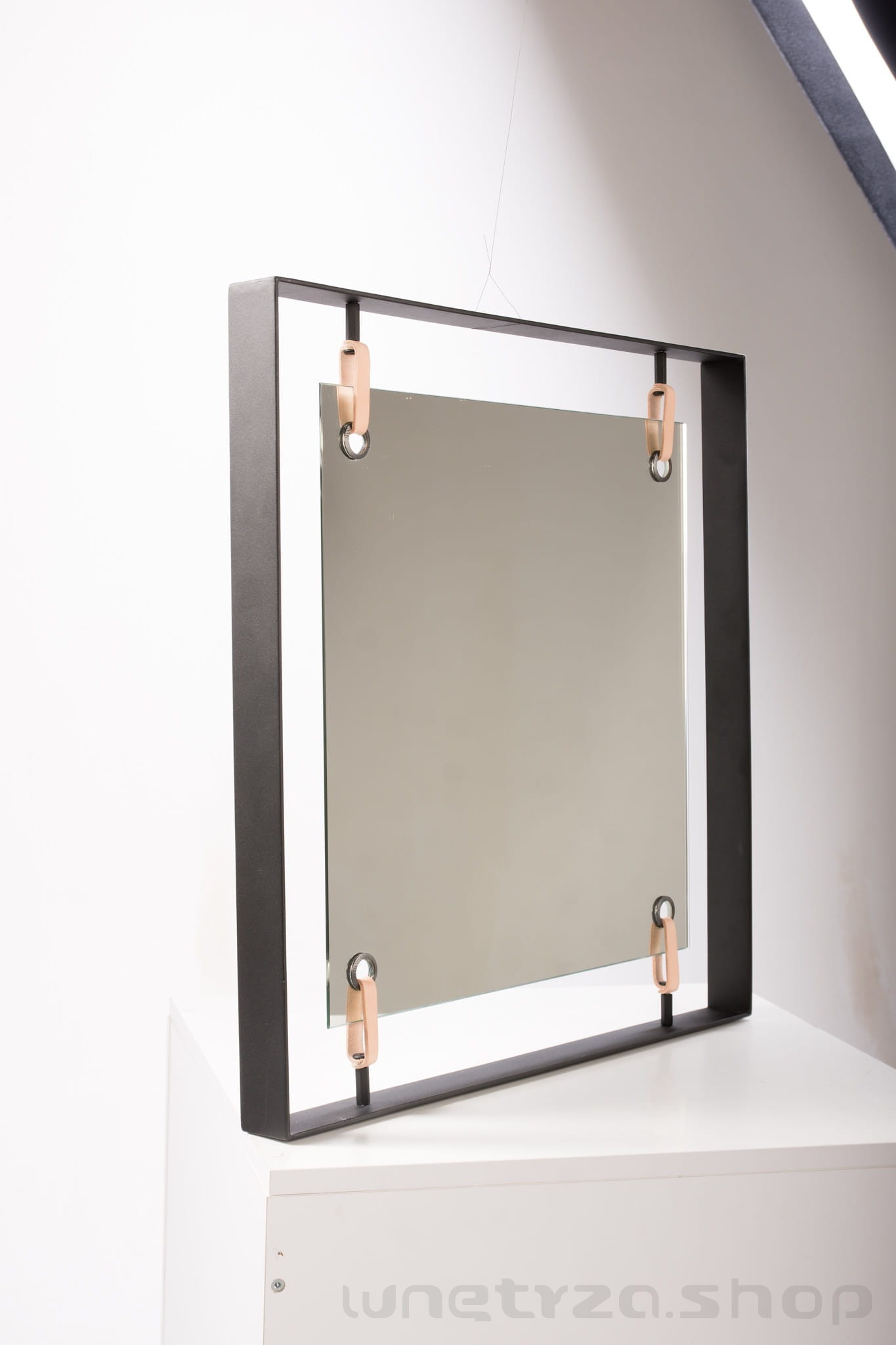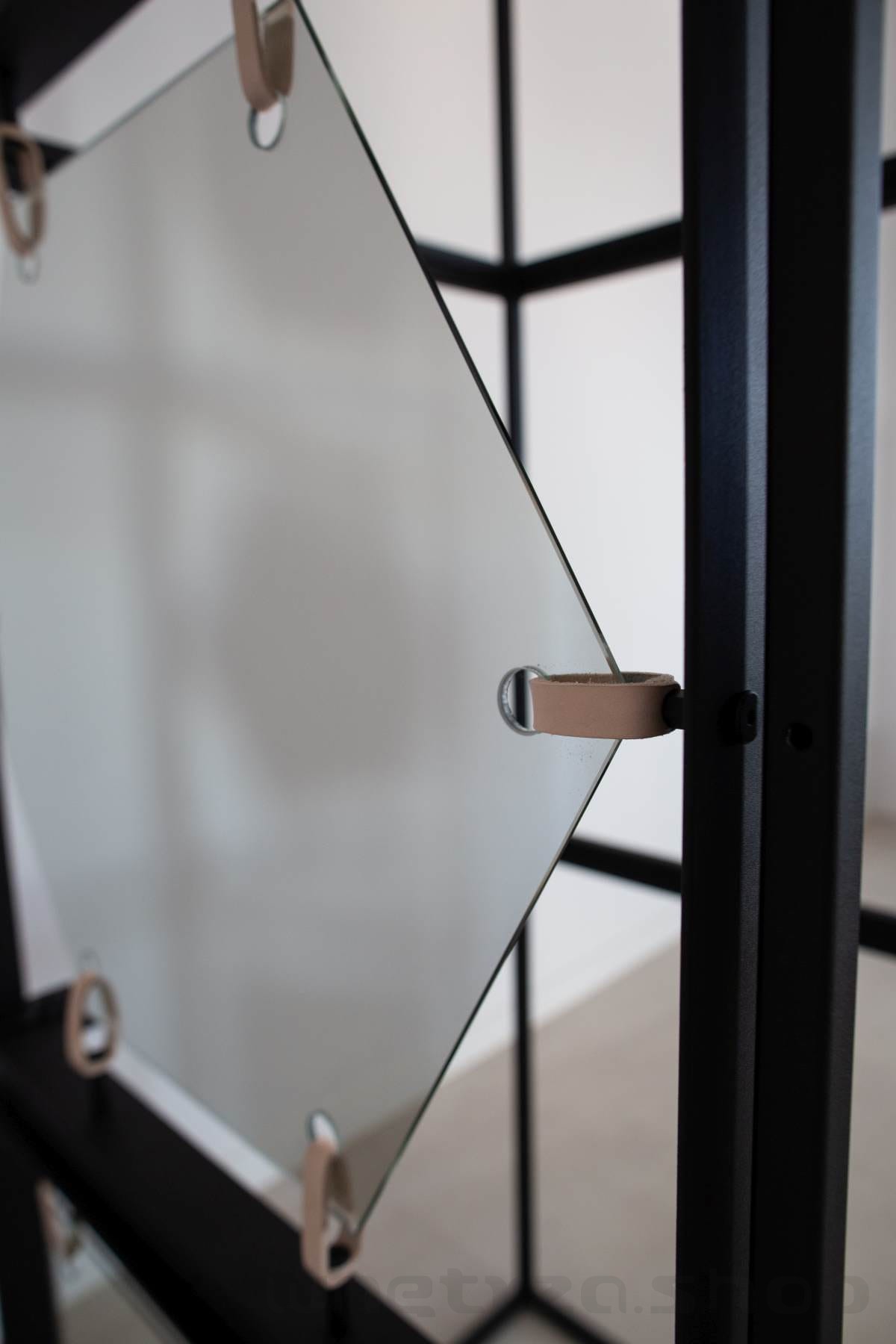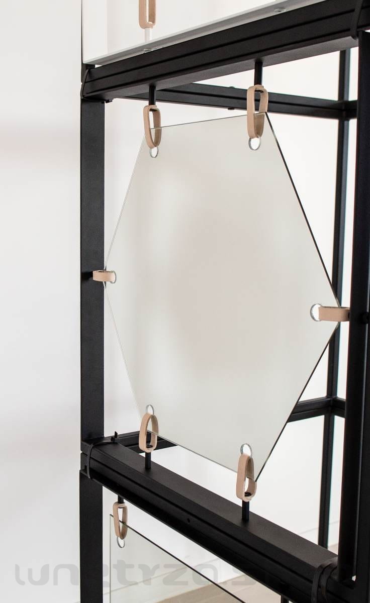 | Materiały | lustro, metal malowany proszkowo, skórzane naciągi |